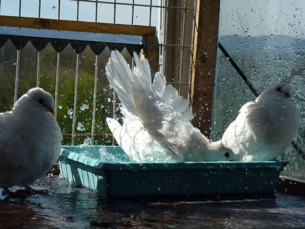 Die erste Gruppe: Die Tiere die im regelmässigen Training ein- gebunden sind, das heisst in der Woche mindestens drei Trainings- flüge absolvieren. Diese Tauben brauchen die restliche Zeit um zu relaxen. Die Gruppe zwei: Ich bin der festen Überzeugung, dass das die ideale Taubenhaltung ist. Somit ist jeglicher Kommentar überflüssig. Die Gruppe drei: Das sind die Tauben die die Beschäftigung am nötigsten haben. Abgesehen von der Brut- und Aufzuchtzeit der Jung- en, in der sie vollbeschäftigt sind. Wie werden die Tauben sinnvoll beschäftigt? Vor einiger Zeit las ich in der Fachpresse einen Bericht über einen Taubenzüchter, der seine Tauben in einem gewächshausähnlichen Taubenschlag hält. Auf dem Boden liegt Humus und überall stehen Pflanzen. Teils ragen sie bis zur Decke. Der „Schlag“ hat den Touch einer Tropenhalle. Am Tag wird zweimal gefüttert, das Futter wird auf dem Boden (im Humus) überall verteilt. So sind die Tauben längere Zeit beschäftigt bei der Futtersuche, bis sie die Körner überall gefunden haben. Dass eine solche Haltung natürlich hygienische Probleme mit sich bringt, versteht sich von selber. Die Sitzstangen sind alle an Schnüren befestigt, somit müssen die Tauben einige Zeit balancieren bis sie richtig sitzen können. Nach Angaben des Züchters sind seine Tauben den ganzen Tag beschäftigt. Davon bin ich auch fest überzeugt. Diese Haltungsweise ist nicht jedermanns Sache. Seit dem ich diesen Bericht gelesen habe, mache ich mir auch immer wieder Gedanken über die Beschäftigung meiner Tauben. Die Tippler, die bei mir im Training sind, sind genügend beschäftigt. Aber in der Ruhezeit (Wintermonate) ist die Situation anders, da macht sich schon eine gewisse Langeweile bemerkbar. Die Beschäftigung meiner Tauben. Als erstes habe ich mir einen Futterautomaten der Firma www.axt-electronic.eu angeschafft. Bei diesem Automaten kann man die Zeiten der Fütterung und die Menge der Futterportionen programmieren. Das bedeutet, dass meine Tippler am Tag bis zu acht mal gefüttert werden. Das bedeutet auch, dass sie nie große Mengen erhalten, aber dafür öfters. Somit müssen sie immer aufmerksam sein, um die nächste Fütterung nicht zu verpassen. Einen Nachteil hat dieses System, es können nur maximal 16 Tauben zur selben Zeit fressen. Da ich nur einen kleinen Taubenbestand habe, ist es für mich OK. Weiter hole ich regelmäßig in einem Kalksteinbruch Kalksand. Den besten finde ich immer am Rande der Felswand, er wird dort vom Regenwasser herunter gespült und ist dadurch recht fein (schnabelgerecht). Den mische ich mit etwas Humus und wenig Hirse, und das kommt dann in eine große flache Schale. Mit diesem Mix sind die Tippler mehrere Stunden beschäftigt. Man kann den Tauben auch ganze Salatstauden mit dem Wurzelstock geben. Je kleinkörniger das Futter ist, desto mehr Zeit brauchen sie zum Fressen. Auch das Baden ist eine gute und abwechslungsreiche Beschäftigung. Bis sie nach dem Bad jede Feder und jedes Federchen geputzt und in die richtige Position gebracht haben, vergeht viel Zeit. Wenn ich die Tippler verpaart habe, lege ich das Nistmaterial in die Voliere, und so sind sie längere Zeit beschäftigt bis sie das Nistmaterial eingeflogen haben. Dabei lernen sie noch genau den Standort ihrer Zelle zu kennen. Ich habe nur einige Beschäftigungen für die Tauben erwähnt. Dieses Thema hat fast keine Grenzen. Was ich noch wichtig finde: dass wir aus eigener Initiative für eine optimale Taubenhaltung sorgen. Somit geben wir den oben genannten Organisationen keinen Anlass uns zu kritisieren (schikanieren). Walter Stettler CH Binningen www.flugtippler.ch