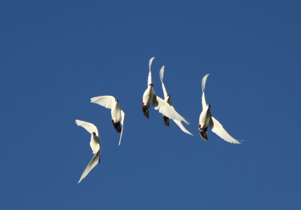Das bezieht sich natürlich nur für meine Kalotten. Die meisten sind willige Flieger. Man darf sie nicht mit den W.H, und S.H vergleichen. Man muss sie einfach jeden Tag oder mindestens jeden zweiten Tag trainieren. Die Selektion ist bei den Flugkalotten wichtig, da sie beim fliegen meistens zusammen «Kleben» kann eine Tauben das ganze Team kaputt machen.