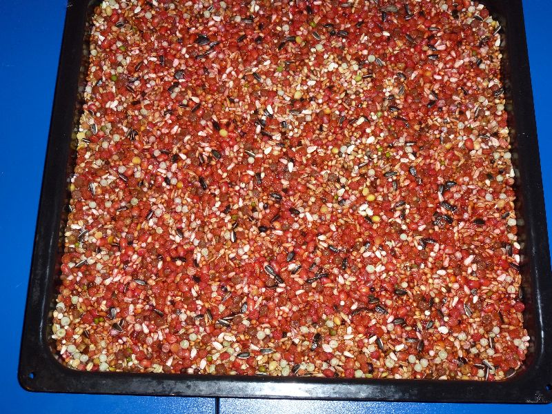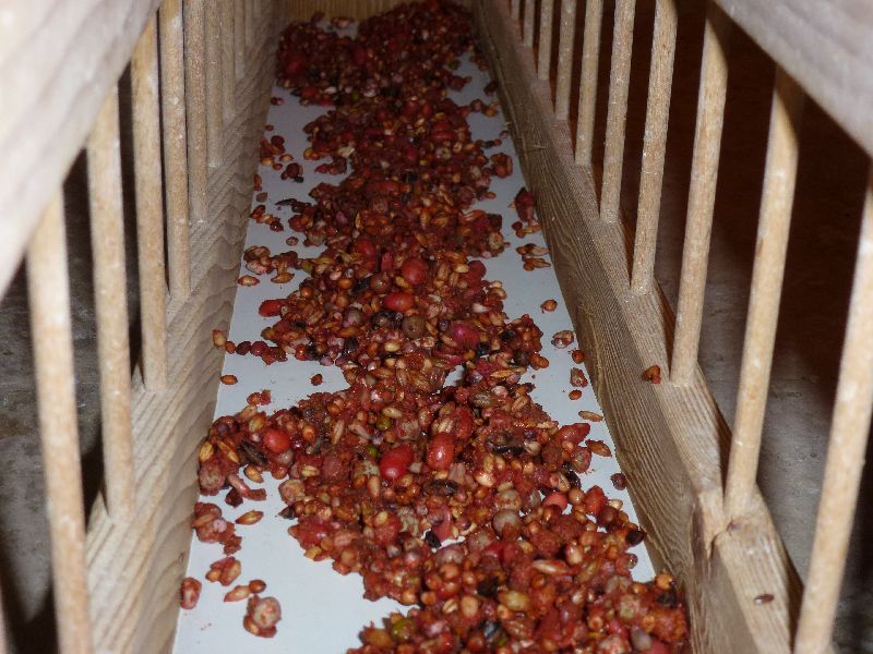 DAS GRÜNFUTTER. Wenn man sich ein wenig mit der Fütterung der Tauben beschäftigt, weiss man, dass die Tauben nicht nur reine Körnerfresser sind. Untersuchungen vom Kropfinhalt bei feldernden Tauben haben er-geben, dass der Inhalt zu 93,5 % aus verschiedenen Sämereien (Körner), zu 4,7 % aus Grünfutter ( Blattteile, Knospen. Blütenblätter, Beeren und Keimsprossen ) und zu 1,8 % tierischer Nahrung besteht. Ich möchte in diesem Beitrag auf die 4,7 % Grünfutter näher eingehen. Das bedeutet, dass auf 1 Kg Körnerfutter (das ist eine Tagesration für ca. 30 Tümmler - Tauben ) 47 g Grünfutter kommen sollte. (Sechs Röschen vom Rosenkohl bringen ca. 47 g auf die Waage). Die 47 g soll nur eine Richtzahl sein. Es ist ja klar dass die Feldernden Tauben nicht jeden Tag gleich viel Grünfutter zu sich nehmen. WAS EIGNET SICH ALS GRÜNFUTTER. Die Palette des Grünfutters ist fast unendlich. Hat man noch einen eigenen Garten, ist die Grünfütterng fast kein Problem. Dann kann man ganze Salatstauden mit den Wurzeln in die Voliere legen. Somit sind die Tauben auch noch lange Zeit mit dem Wurzelstock beschäftigt. Was sie auch sehr gerne annehmen, ist geschnittene Luzerne, Vogelmiere und Schnittlauch. Werden Früchte und Gemüse schnabelgerecht geschnitten, wird auch das von den Tauben aufgenommen. Teilweise braucht es eine gewisse Angewöhnungszeit bis die Tauben es fressen. Es ist ein Vorteil, in dieser Phase die Futtermenge etwas zu reduzieren. Dann wird das Grünfutter schneller angenommen. GRÜNFUTTER IST KEIN ALLEINFUTTER ! In der Nachbarschaft kannte ich einen Taubenzüchter der kaufte ganze Körbe Salat ein, wenn es eine Aktion gab. Dann bekamen seine Tauben über Tage ja Wochen nur Salat. Sein Argument für diese "Salatkur" war: "Der Salat ist billiger als das Körnerfutter". Auch das ist eine Einstellung! Aber der Kot der Tauben war grün und matschig. Der Grund, warum man Tauben nicht über lange Zeit nur mit Grünfutte r ernähren sollte, liegt bei den Därmen. Der größte Teil des Verdauungsvorgangs wickelt sich im Darm ab. Die Tauben haben im Vergleich mit der Gans, die sich größtenteils von Grünfutter ernährt, einen kurzen Darm. Das Verhältnis Körperlänge zur Darmlänge ist bei der Gans 11:1 bei der Taube 5:1. Diese Zahlen sind doch deutlich. Jetzt kommt noch etwas Wesentliches dazu. Der BLINDDARM. Bei den Tauben sind die Blinddarmsäcke nur andeutungsweise vorhanden und nicht funktionstüchtig. Vergleicht man den Blinddarm der Taube mit dem der Gans, so sieht man, dass der Blinddarm der Gans ein respektables Ausmaß erreicht. Im Blinddarm leben Bakterien, die zur Verdauung der Zellulose zuständig sind, und das Grünfutter hat teilweise einen hohen Zelluloseanteil. Die Darmpassage der Tauben ist nur kurz und so kann die Zellulose nur schlecht verwertet werden. Das bedeutet, dass viel ungenutzt wieder ausgeschieden wird. Um das zu verhindern, habe ich eine "GEMÜSESUPPE" für meine Tauben zusammengestellt . Das Rezept ist ganz einfach: ½ Liter Gemüsesaft (den kann man in jedem Lebensmittelgeschäft kaufen, aber natürlich auch selber herstellen) gieße ich in einen flachen Teller und füge dann 1 Kg Körnermischung bei. Das Ganze lasse ich 48 Stunden stehen, dann haben die Körner den Saft aufgesogen. Darüber streue ich dann noch einen Esslöffel Bierhefe und fertig ist die Suppe. So habe ich die Garantie, dass die wertvollen Inhaltsstoffe des Gemüses von dem Organismus der Tauben voll aufgenommen werden können. Der Gemüsesaft, den ich verwende, besteht (laut Angaben des Herstellers) zu 99 % aus Gemüse: Tomaten, Karotten, Sellerie und Randen, sowie aus Zitronensaftkonzentrat, Meersalz, Gewürzen und Kräutern ERNÄHRUNGSFAKTEN: 100 ml enthalten, Eiweiß 0,5 g, Kohlen-hydrat 6 g, Zucker 4 g, Fett 0,5 g, Ballaststoffe 0,6 g, Natrium 0,27g und Kochsalz 0,5 g. Diese „Taubensuppe“ wird von meinen Tauben gut aufgenommen. Im Anfang hatte ich meine Bedenken, da die Körner noch recht feucht waren, und die „Suppe“ mich an einen Brei erinnerte. Damit hatten die Tauben aber kein Problem. Die Futtertröge sind am anderen Tag immer leer. Diese „Taubensuppe“ gebe ich im Winter alle 2 Wochen, in der Brut und Mauserzeit jede Woche. Walter Stettler CH Binningen www.flugtippler.ch
